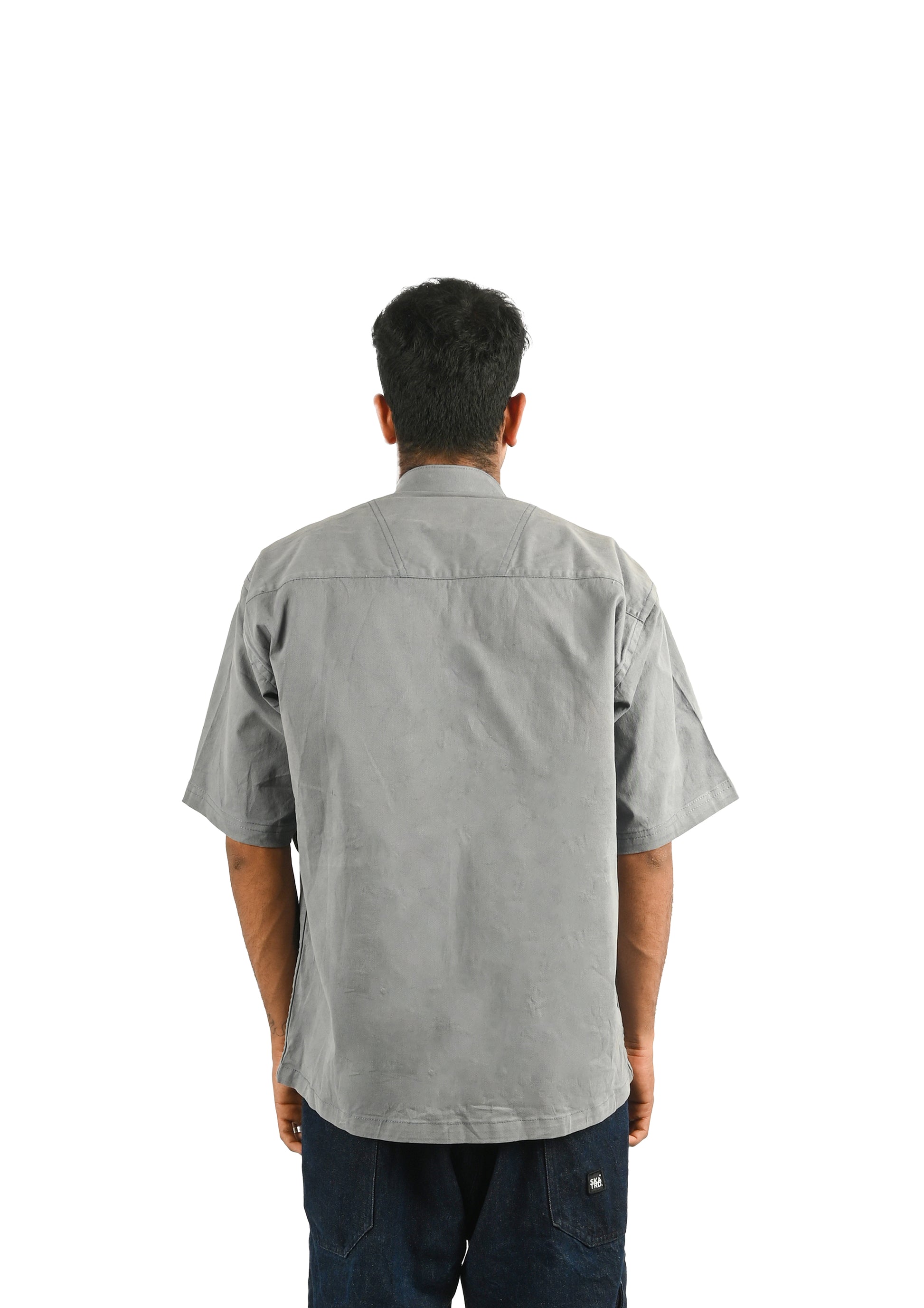 Our series of oversized shirts has a new design, this time it has a band collar with zipper. It has a slit double stitch detail with 2 symmetrical patch pockets in the front. The SKATRD patch logo detail is given at the left chest. It gives an oversized boxy fit.